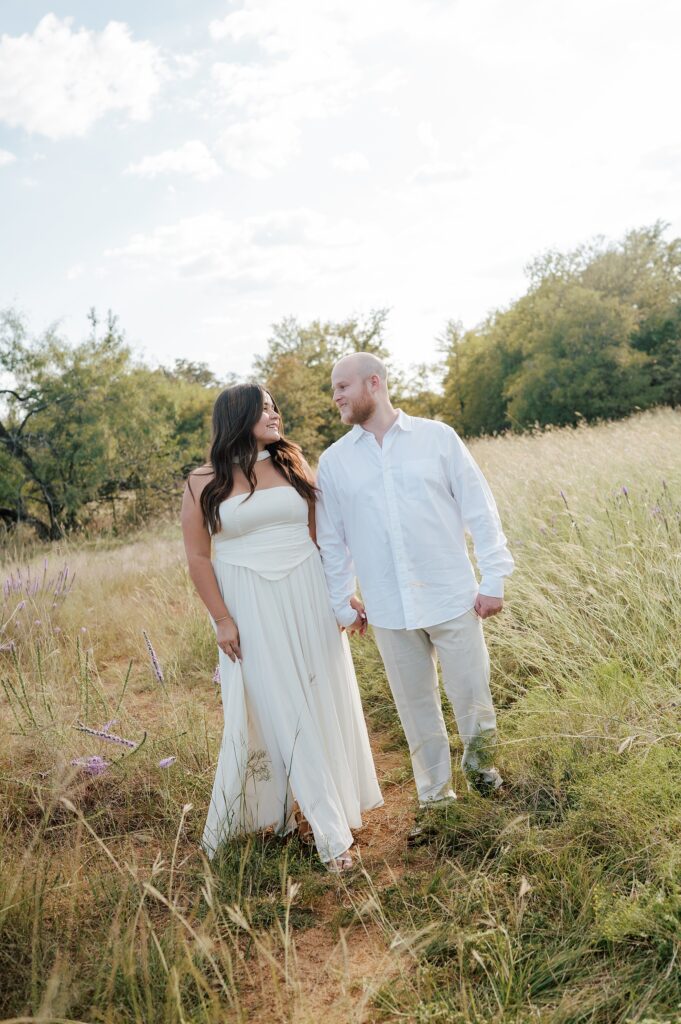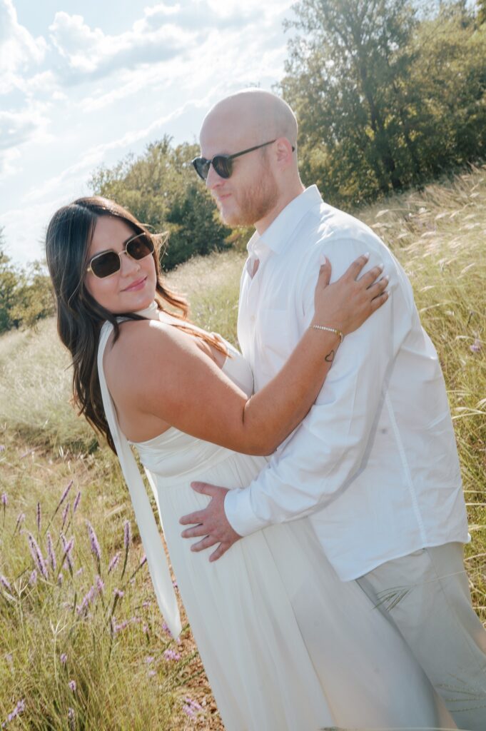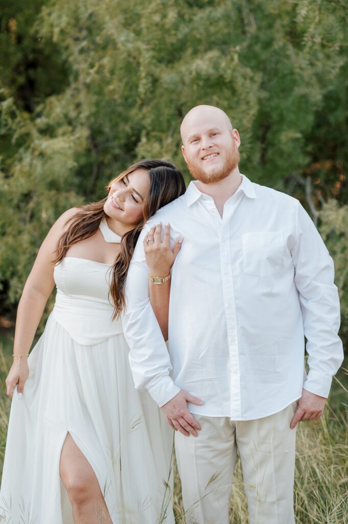 During our design call, Melanie mentioned wanting their engagement session to include water — something that felt calm, romantic, and connected to nature. Murrell Park turned out to be the perfect spot, with its beautiful mix of greenery, open skies, and that stunning lakeside view. As a Dallas engagement photographer, I love how this location brings together earthy tones and a sense of peaceful intimacy, making every image feel effortless and timeless.