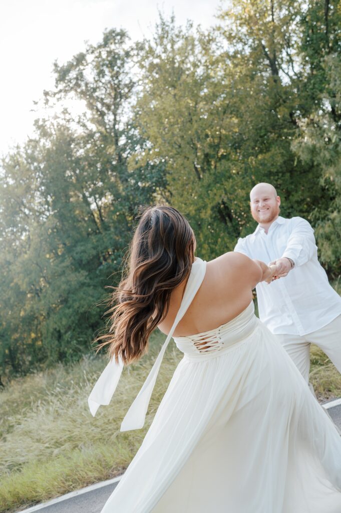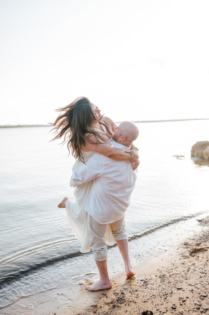 We started the session in the tall grass, easing into some light posing to get a feel for Melanie and Michel’s personalities and energy together. I always like to begin this way — keeping things relaxed and fun — before moving to the more intimate, emotional parts of the shoot. I knew from the start that our lake photos would be the perfect ending. By then, they’d be completely comfortable in front of the camera and fully present with each other.